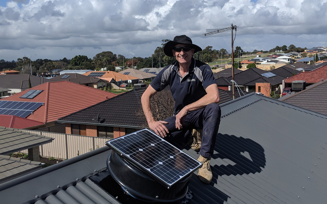 Solarking - Solar Roof Ventilation Fan extracts hot and dry air from the roof and keeps your house cool. Australian summers continue to get hotter and so do our homes and workplaces. A great solution to tackle this is Solar Roof Ventilation. Have you ever noticed how the lower storey of a 2 storey house is much cooler than other parts of the house? This is due to the ceiling directly above blocking the extreme heat from the lower level. The SolarKing Solar Roof ventilation fan does the same job, by replacing the hot air in your roof space in summer with the cooler outside air. This makes a big difference to your indoor comfort level. Australian summer temperatures inside your roof can often reach between 50°C to 70°C, with much of this heat then entering your living spaces.